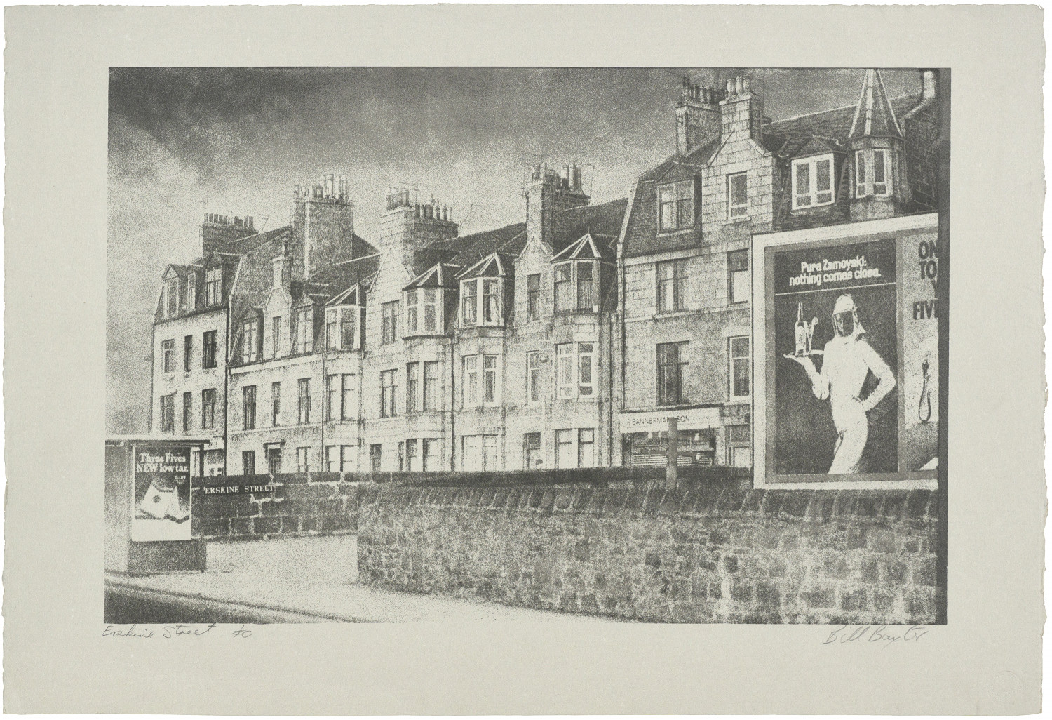 Part of 'Aberdeen Streets' an exhibition of prints by Bill Baxter, Jimmie Furneaux, Don Kelman and Willie Watson. First shown in ArtSpace Gallery on Belmont Street before touring round non-art venues in the North East of Scotland.
