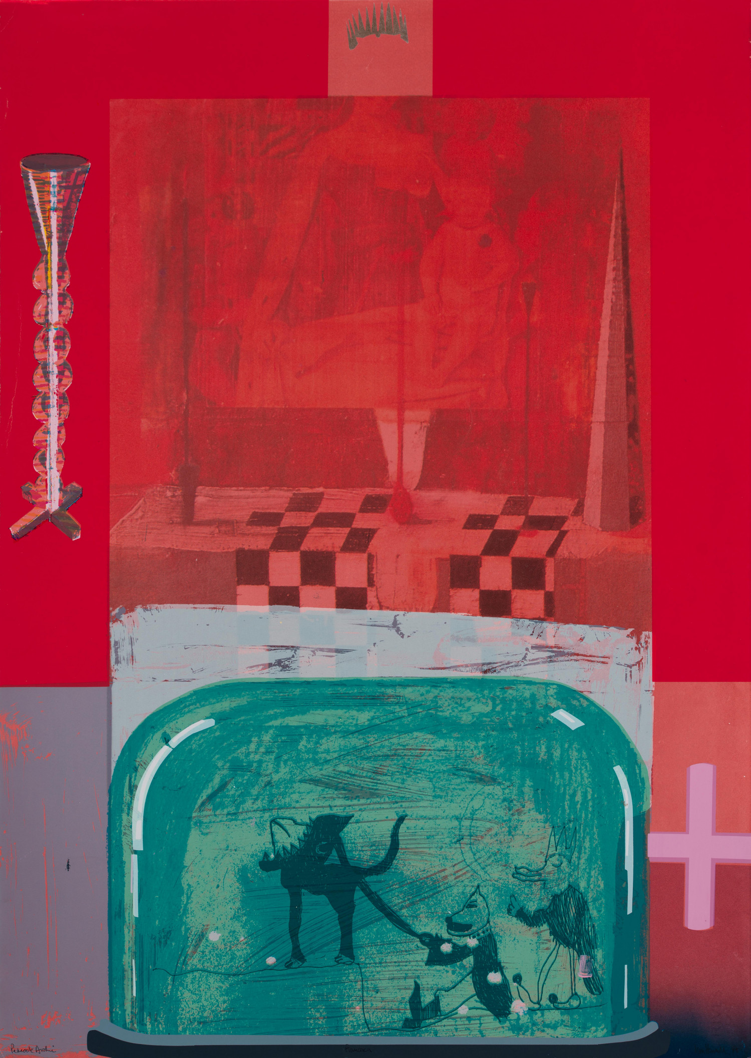 There is an accompanying publication of 80 pages and 20 colour plates with essays by Alan Woods, which places the print series in the context of the artist’s other work; Jane Lee, whose comprehensive text unravels the iconography and charts the sources of the imagery in the wider history of ideas; and Arthur Watson, who describes the technical aspects of the work.