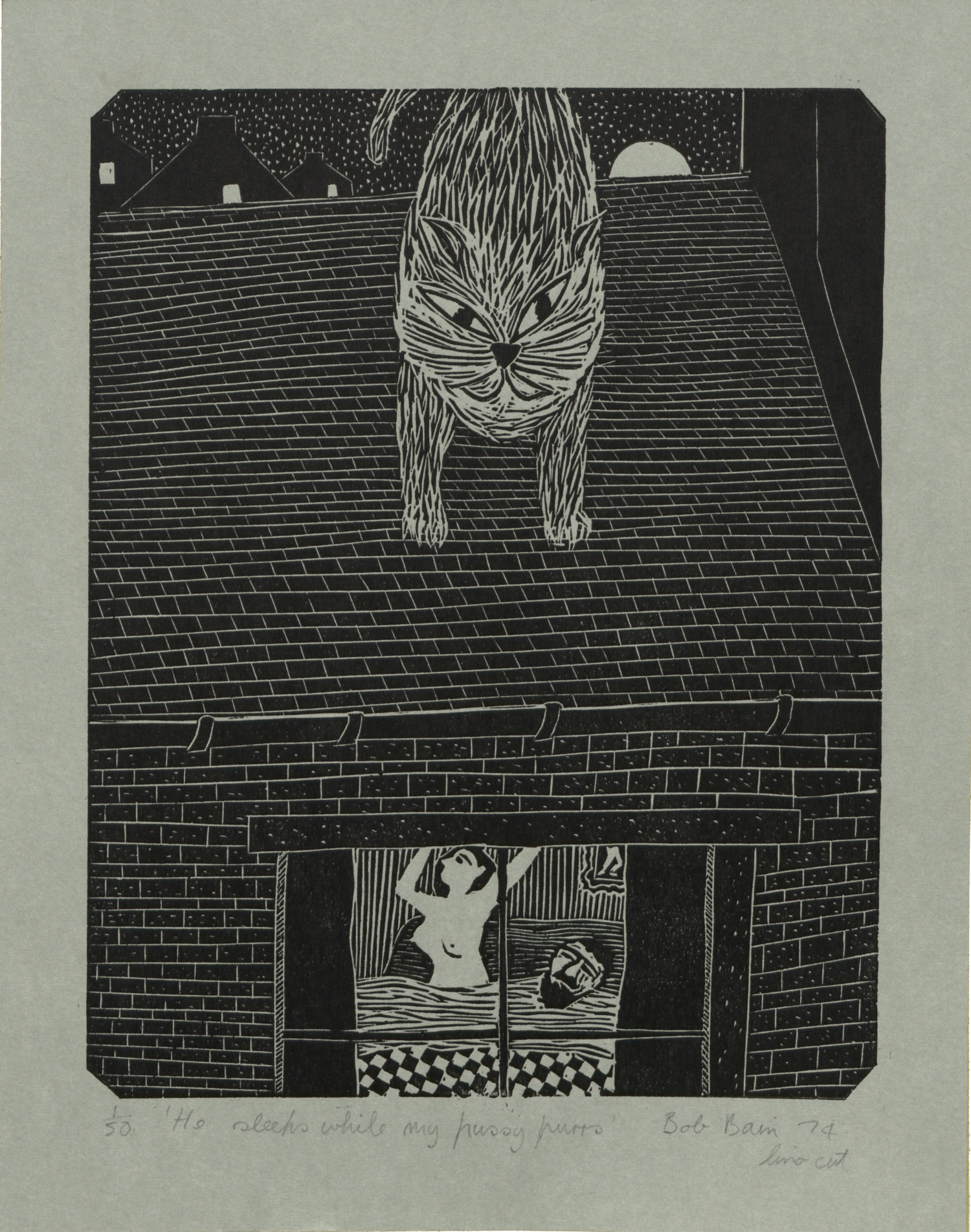 Peacock are custodians of Bob Bain’s printed pieces and hold a significant body of work from his time printing at Peacock. His legacy continues through his visionary linocuts serving as reminders to create work based on an ‘emotional response to nature’s moods’. A true romanticist, Bain’s works are the very embodiment of personal narrative through a printed medium.