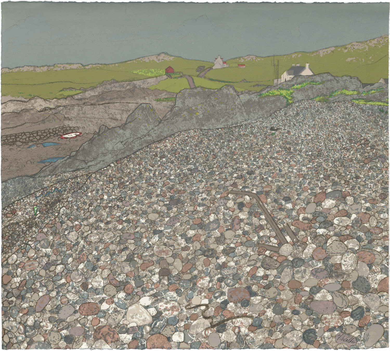 Frances was one of the founder members of Peacock Printmakers in 1974 and has continued to have a close association with the workshop ever since and is still printmaking from stone, plate and screen.