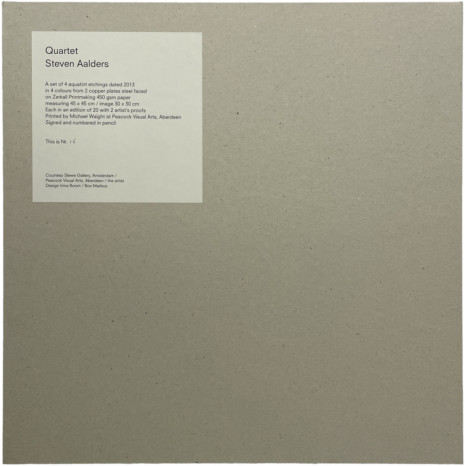 Box set containing all 4 "Place" etchings. Box designed by Irma Boom