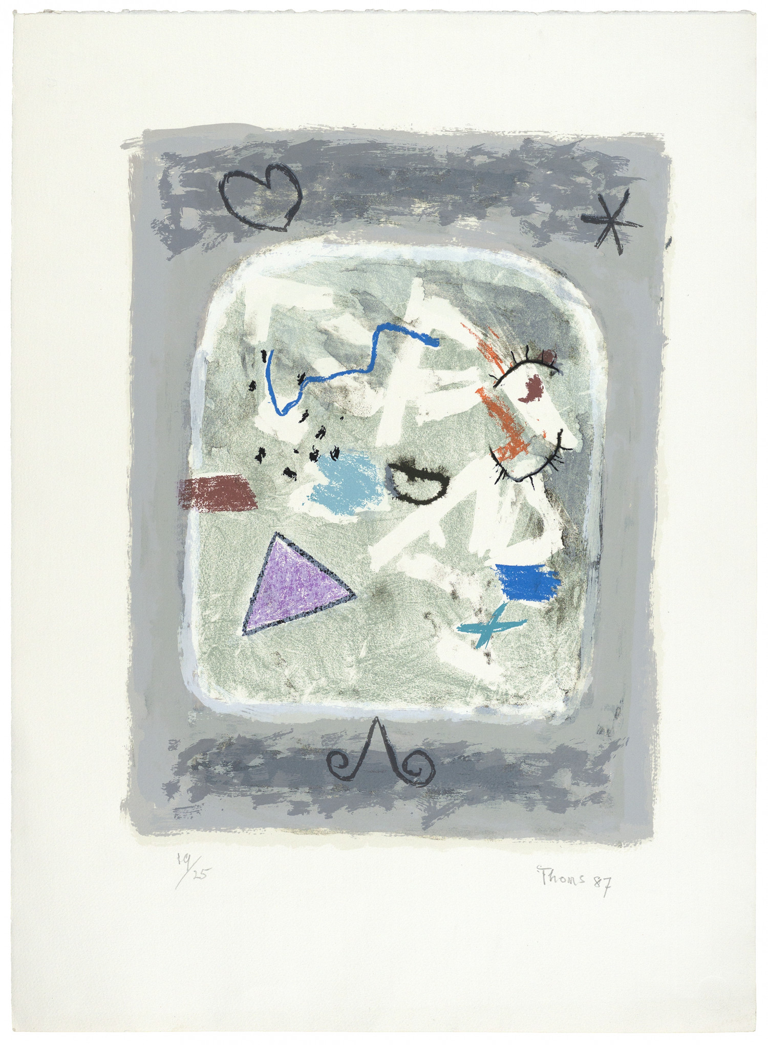 Colin Thoms (1912 - 1997) had an intuitive approach to his work, creating a poetic dreamworld that incorporated the influences of Klee and Miro