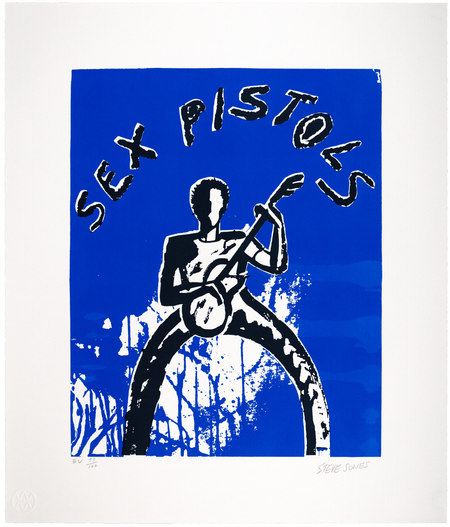 During the exhibition we are excited to launch a newly editioned screenprint of the original drawing ‘Guitar Sketch’ which marked the beginning of Jamie’s iconic style associated with the Sex Pistols. To recreate Jamie’s DIY aesthetic, Print Technician James Vass applied the ink with varied pressure and speed, this method introduced visual texture, unpredictable layering and a deliberately inconsistent finish. Although this print was discussed with and sanctioned by the artist, production took place after his passing in August 2023. The edition has instead been signed by Sex Pistols founder and guitarist, Steve Jones. The print will be on display in the exhibition and available to purchase.