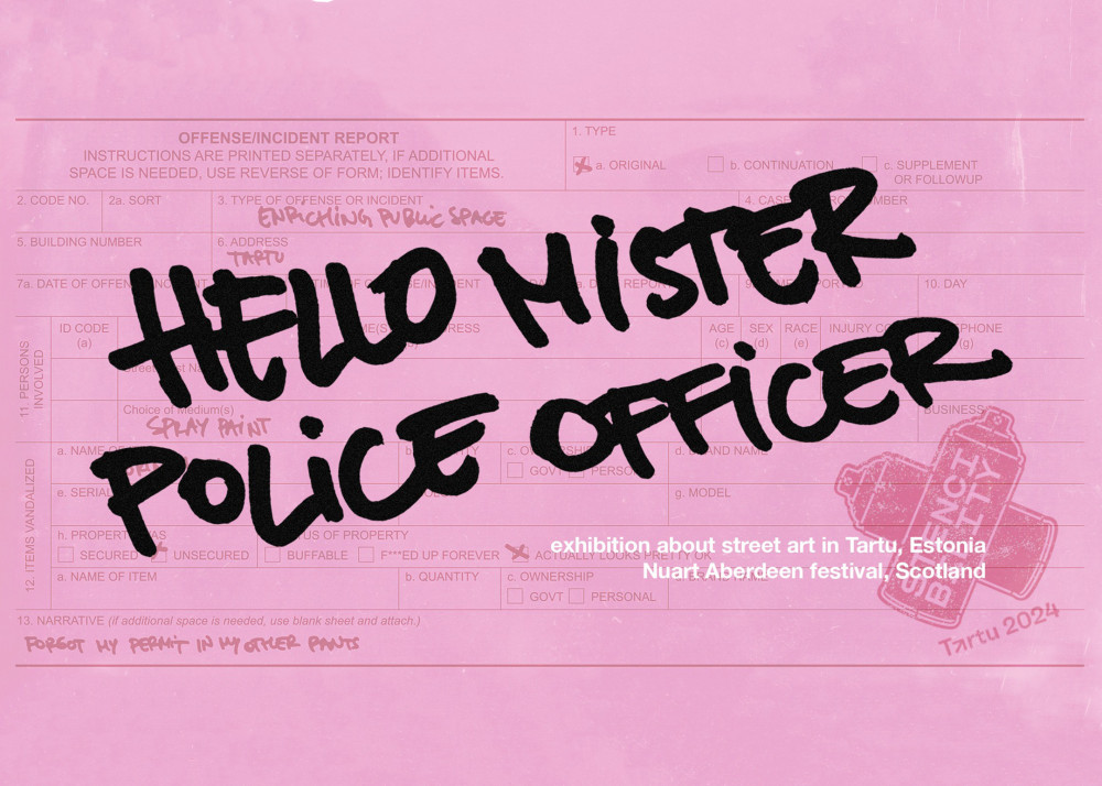 Street art is often thought of in connection with big cities - such as New York, London or Berlin. This exhibition is about the street art scene of Tartu, a small wooden town with only 100 000 inhabitants, that is now called the street art capital of Estonia. Tartu is a university city running under the motto 'the city of good thoughts'. Indeed! We believe that public space belongs to everyone and our job is to take care of it. We believe that the purpose of street art is to enrich, not ruin, public space. We also see the humour in getting caught by the police and try to explain why the walls are “talking to us” and asking for colour. The exhibition tells a story about small town Robin Hoods who are breaking the law in order to bring art to the streets, make our environment more meaningful and personal. It’s also about the attitude of bringing the desired change yourself instead of waiting for someone else to do it for you. Stencibility represent four artists - KAIRO, Stina Leek, GUTFACE and Edward von Lõngus - who use different mediums and have different backgrounds, but they share a common interest of working in public space.