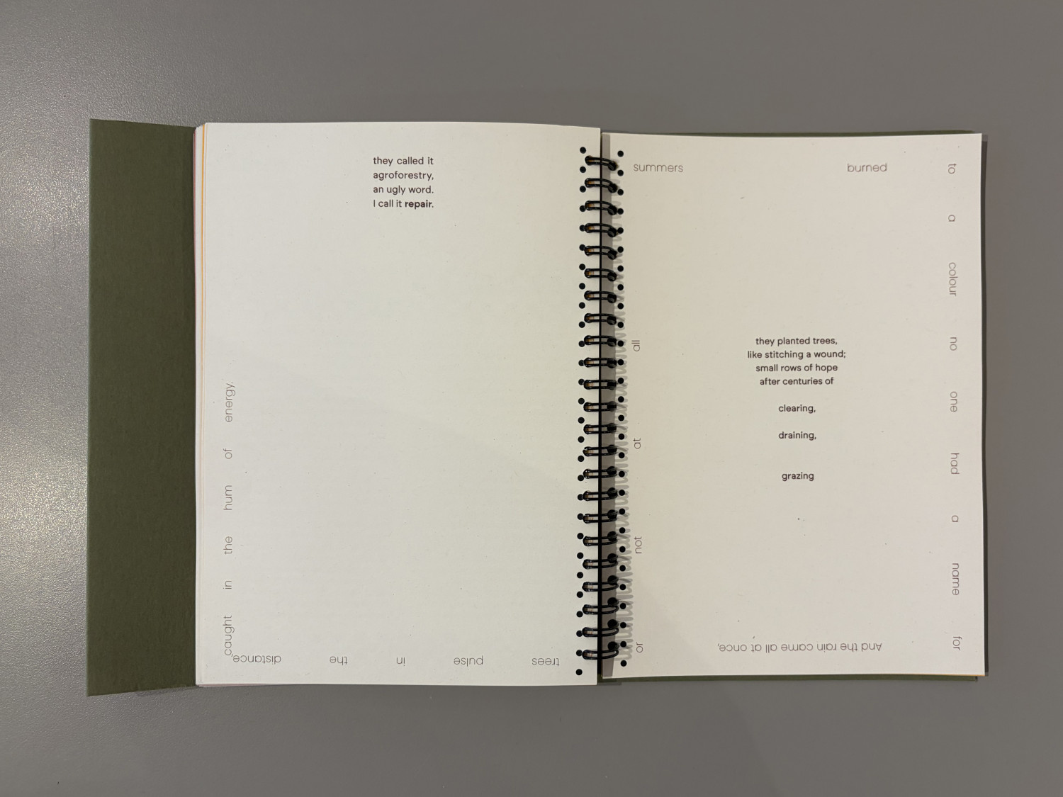 Volume 0 was developed through the UKRI-funded Treescapes (Agroforestry Futures) project. The book is by Jen Clarke (Gray’s School of Art, RGU), with contributions by artists Fionn Duffy and Alison J. Scott, design by Francisca José, and production by Neil Corall at Peacock: a workshop for art.