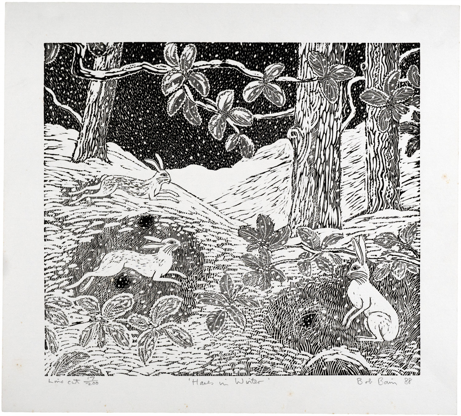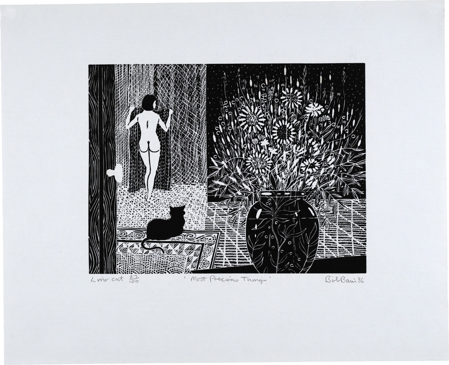Peacock are custodians of Bob Bain’s printed pieces and hold a significant body of work from his time printing at Peacock. His legacy continues through his visionary linocuts serving as reminders to create work based on an ‘emotional response to nature’s moods’. A true romanticist, Bain’s works are the very embodiment of personal narrative through a printed medium.