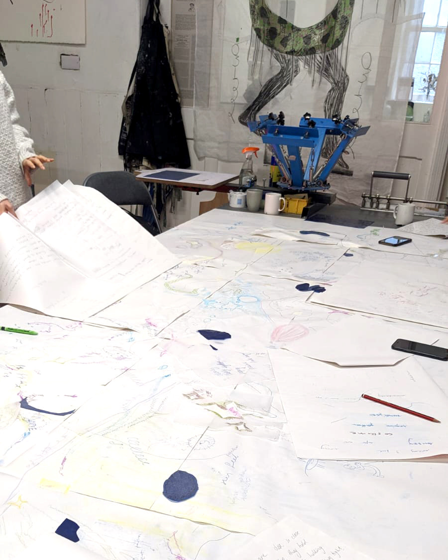The workshop will take place in the screenprinting studio at peacock, from 1 to 5 pm on Saturday 11th March. Participants will be invited to respond to some of the works in the exhibition through creative collaborative writing techniques. Using Medusa's Island, a work representing a fictional island in Delaine’s exhibition, to generate storytelling and mapping, the workshop wants to be a chance to explore what it means to write together and on someone else’s work. Participants will be invited to think about the permutations that stories go through as they get passed on, as their boundaries, and those of the writers and artists that handle them, become loose and elastic, and maybe dissolve.