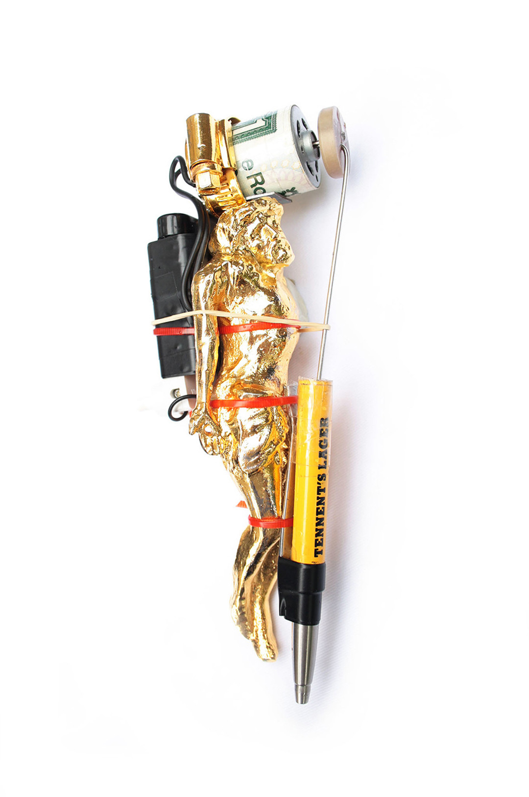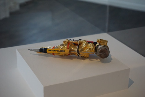 The Brownlee Brothers create work with a warped narrative combined with a tacky vulgarity and boyish humour to portray a dark caricature of growing up in Scotland. Coming from a long line of publicans, pub culture and storytelling is integral to their practice. They are interested in how stories can warp over time bringing new meaning and relevance. They bring new sanctity to the mundane by combining the paradoxical fusing influences from prison tattoos and recognizable trademarks they explore the importance of branding through the use of sigils.