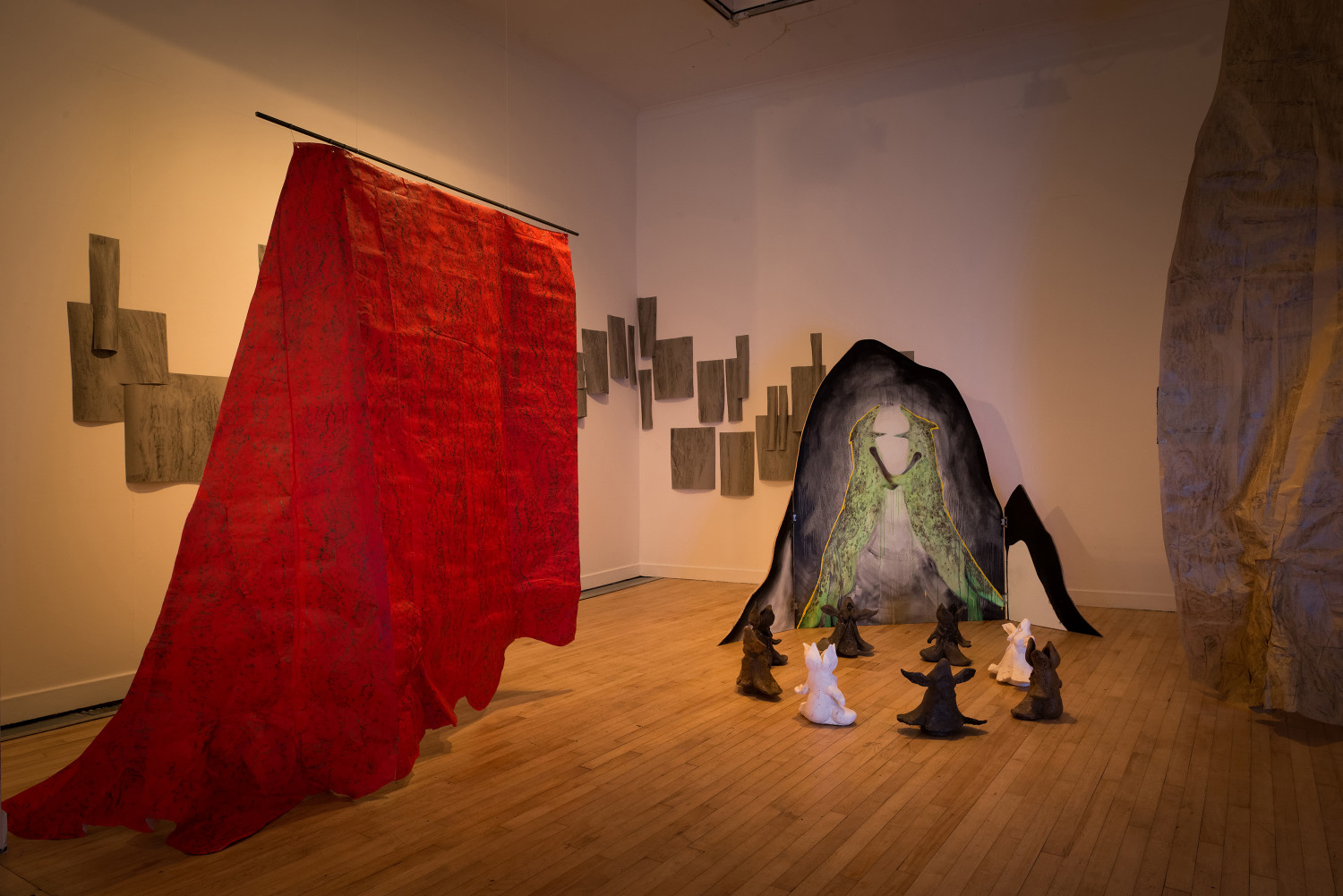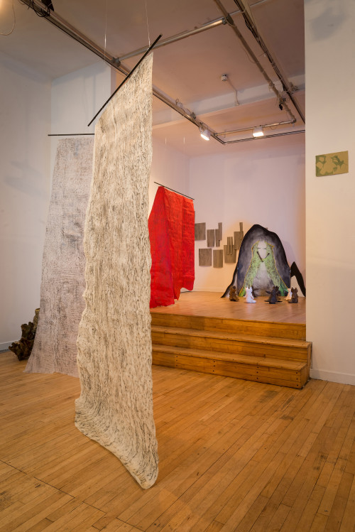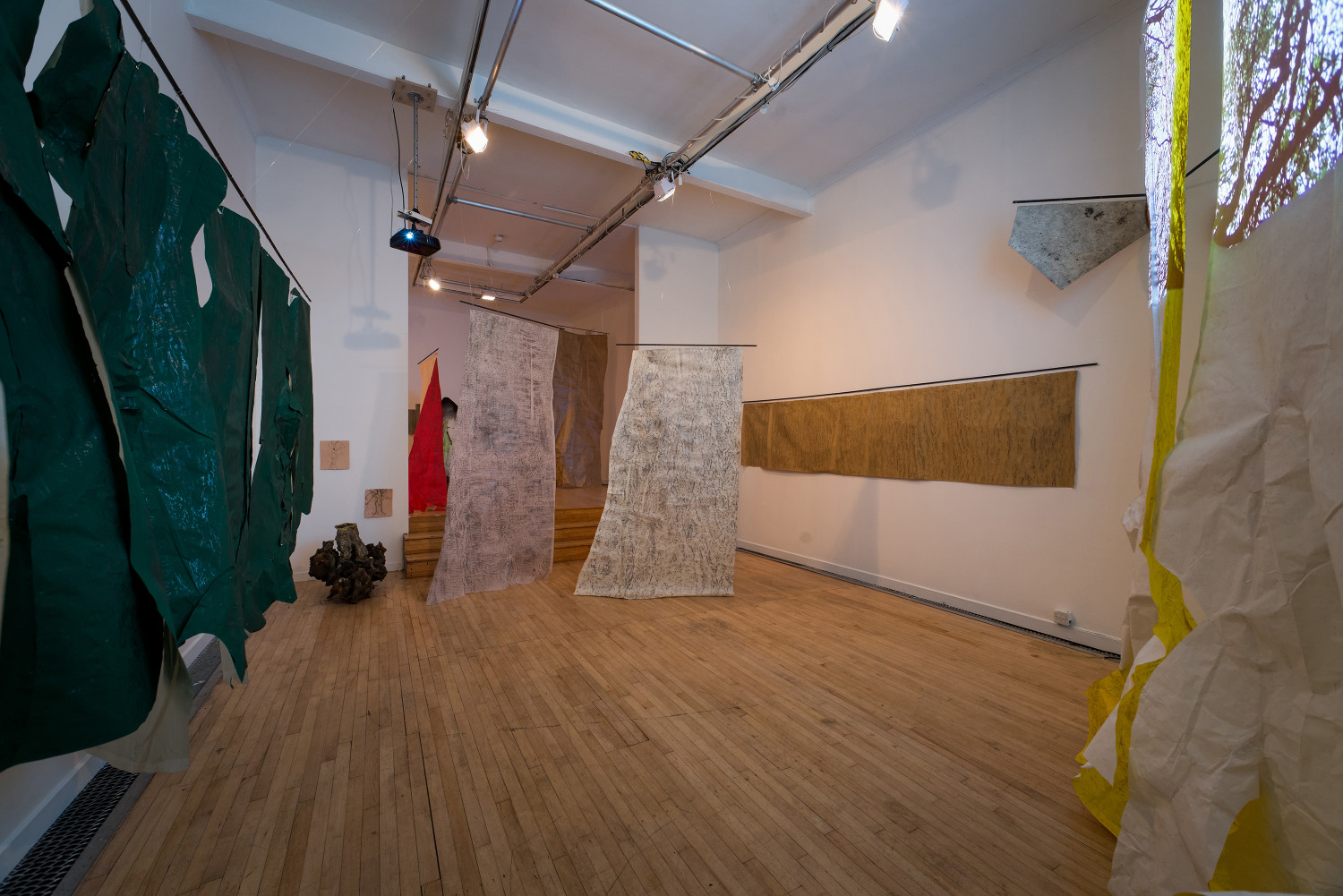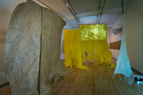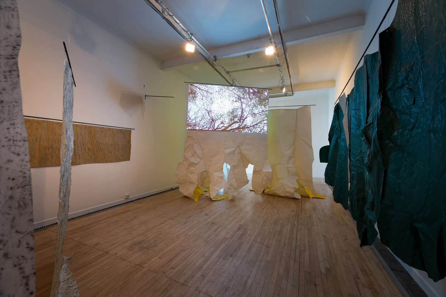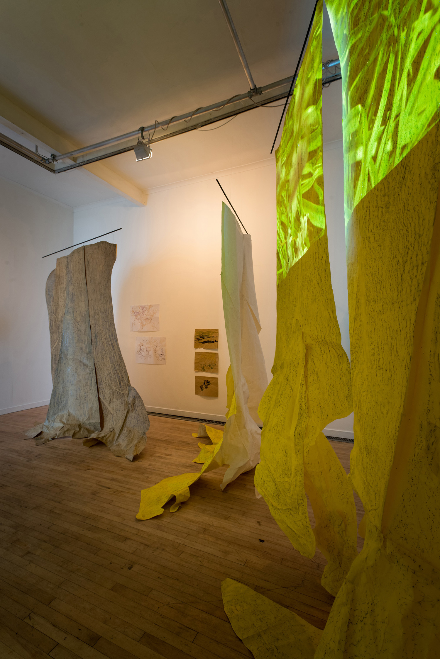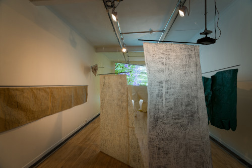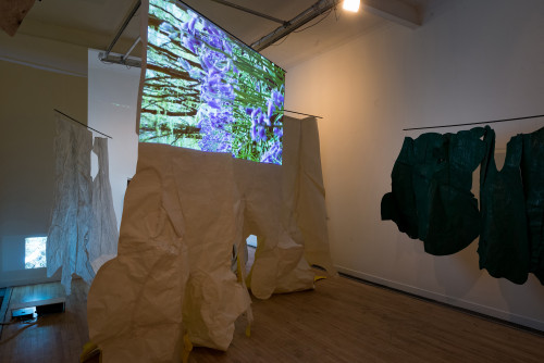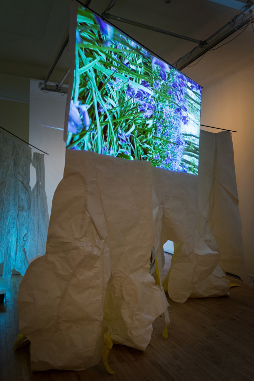 The video called Animat is rather different. It came about because I placed a painting I had made on the floor of the woods over a small bush to dry, so I could roll it up and take it back to the studio. But then I got fascinated at the way the wind animated the painting. It got under and into it and made it appear to breathe, to become animal. I hope it brings something of that in-the-moment experience to the gallery - brings a little of the wind in to get under and into the exhibition.